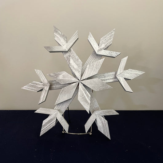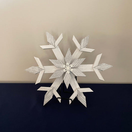 Bring the holiday cheer into any room in the house with this rustic snowflake. This 15 .5 inch wooden decorations comes complete with a D-ring hanger. Versatile and lightweight, this item blends well with all types of Christmas decorations.